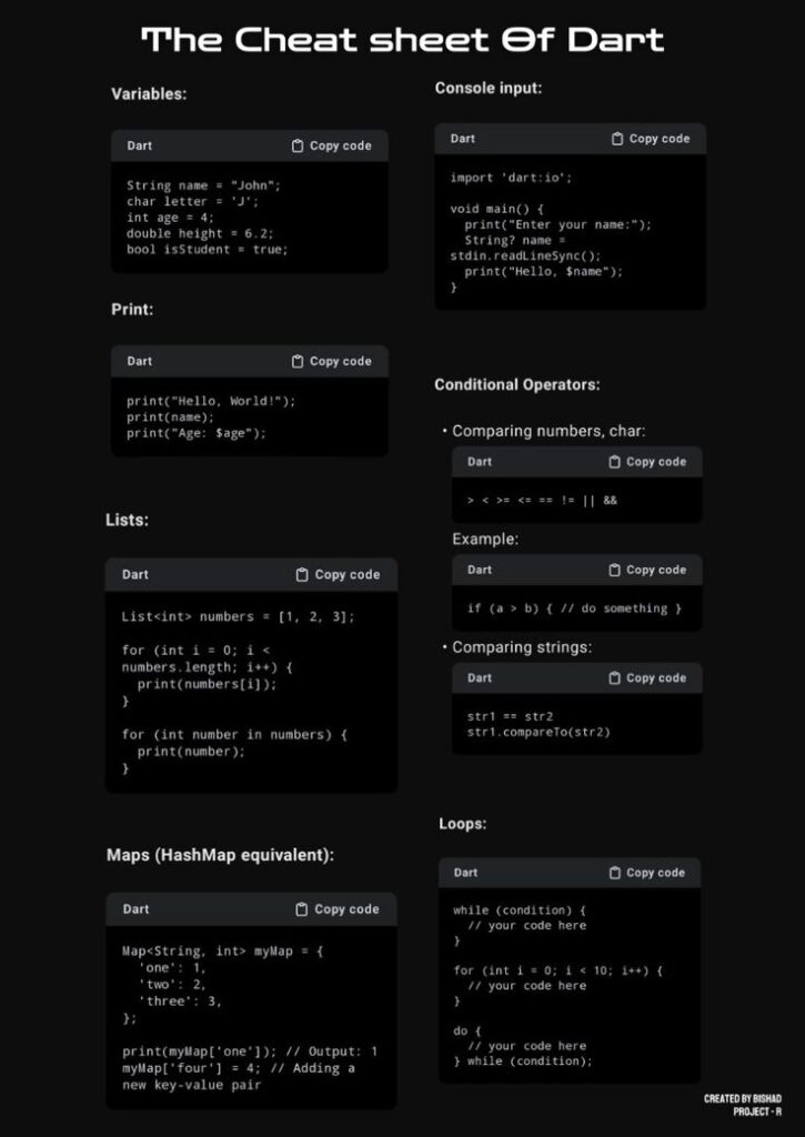 Dart’s syntax is simple, readable, and easy to learn, making it approachable for beginners as well as experienced developers. It supports modern programming concepts such as: